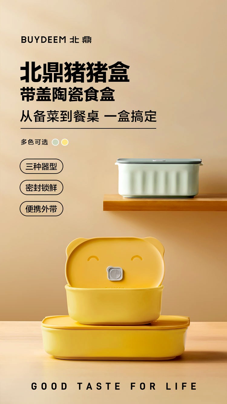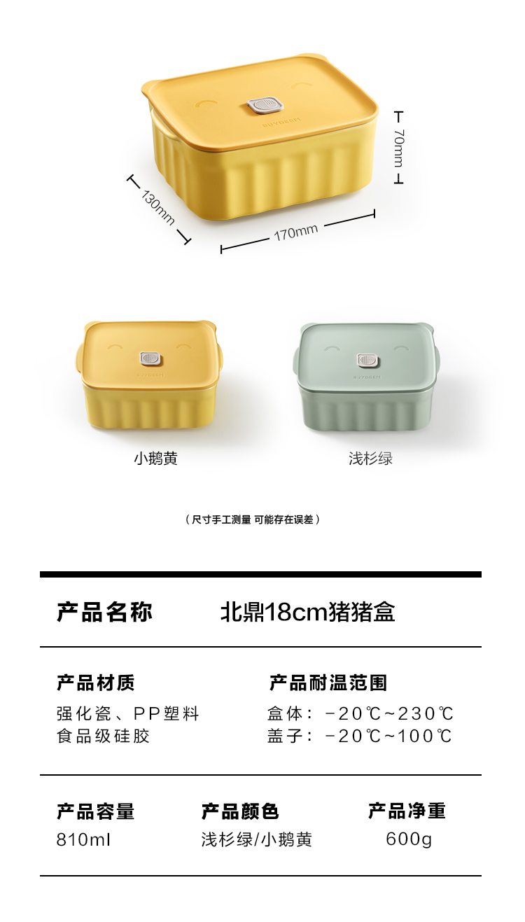 商品名称:(汇景缘)北鼎多功能18cm猪猪盒学生便当盒大容量汤碗可微波加热